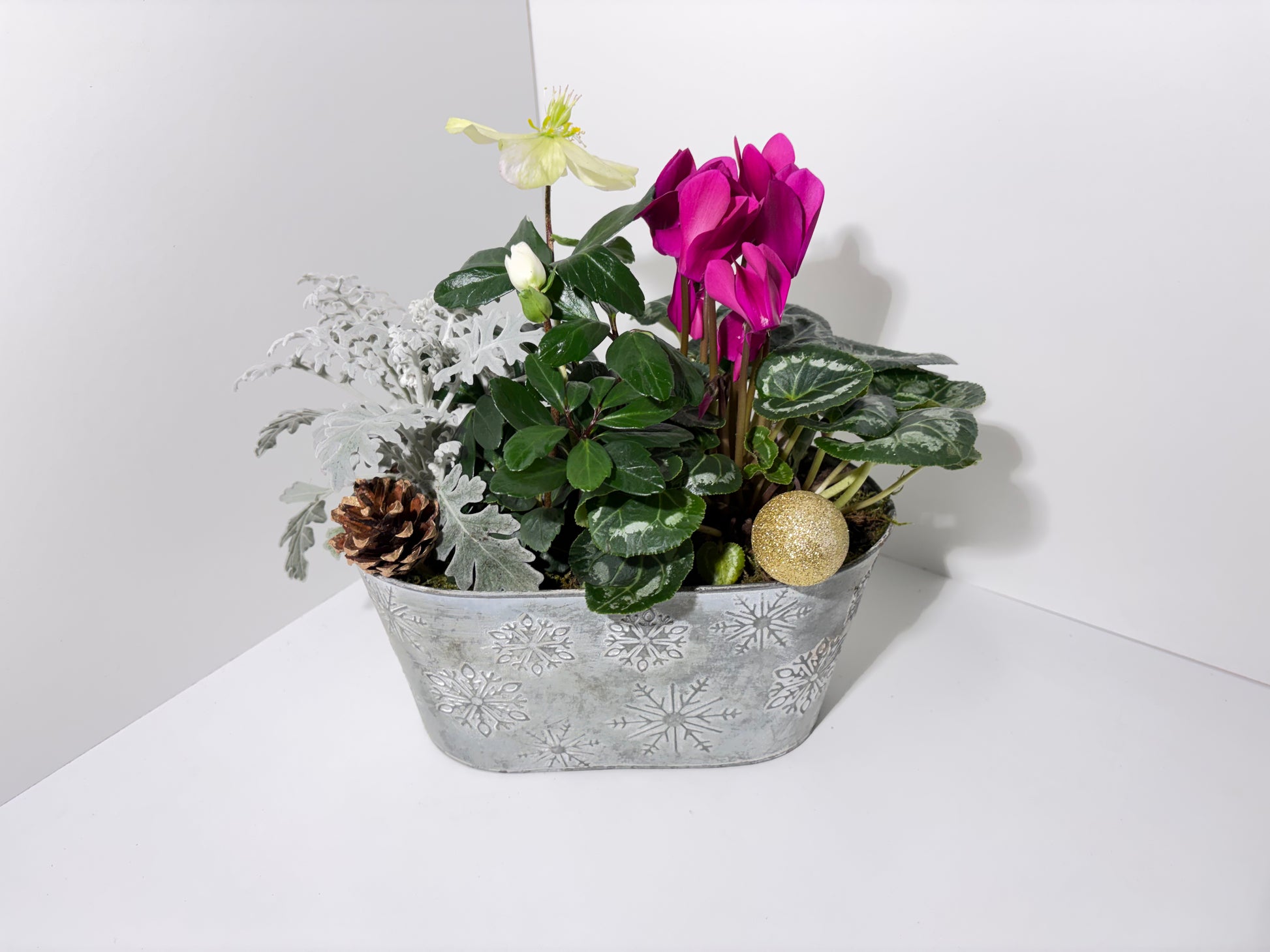 Composition végétale de saison – Cyclamen & Hellébore